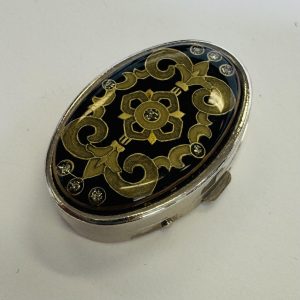 Small Silver Pill Box with Brown Panel